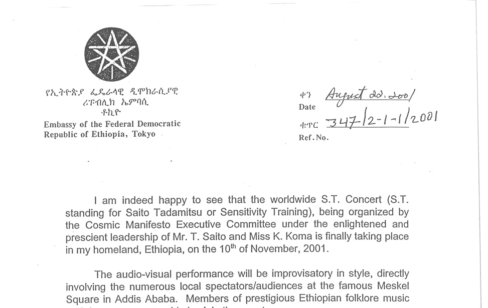 11月エチオピア アディスアベバ メスケル広場にてエチオピア政府との共同主催にて人類発祥の地エチオピアから全世界へ平和を発信する大規模コンサート「天命」コンサートを開催。(現地発表による聴衆11万人。全世界衛星放送、インターネット配信実施)